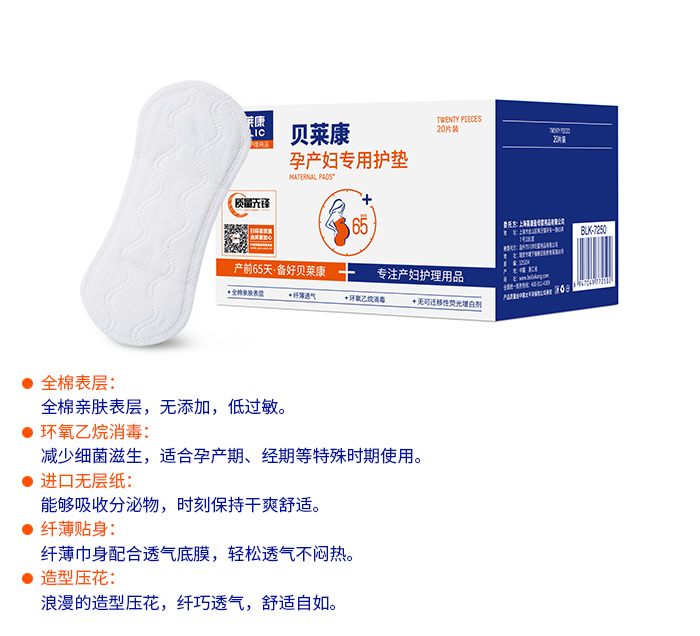 产前:临近分娩,分泌物也会多起来,需使用经过环氧乙烷消毒的专用护垫,保护产道,卫生清洁,顺利分娩。 产后:产后白恶露期过后,还会有分泌物,新妈妈产后身体虚弱,免疫力差,需使用经过环氧乙烷消毒的专用护垫,才能有益于保护产道,卫生清洁,安心度过月子期。